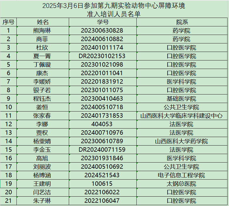 2025年3月6日參加第九期屏障環境準入培訓人員名單