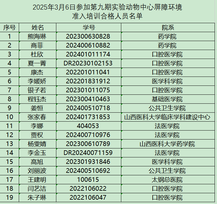 第九期屏障環(huán)境準(zhǔn)入培訓(xùn)合格人員名單