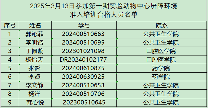 第十期屏障環(huán)境準(zhǔn)入培訓(xùn)合格人員名單