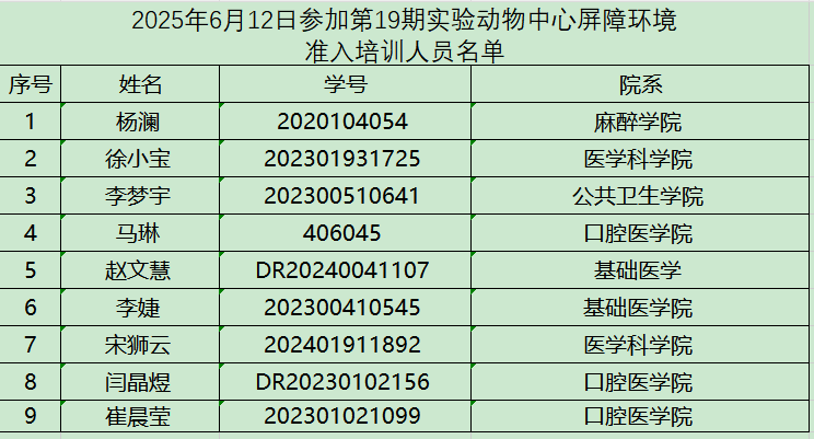 請(qǐng)名單中人員于2025年6月12日下午14:30到動(dòng)物中心三層多功能會(huì)議室參加培訓(xùn)和考核!