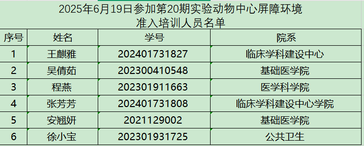 請以下參培人員于2025年6月19日14:30至動物中心三層多功能會議室參加培訓(xùn)和考核!