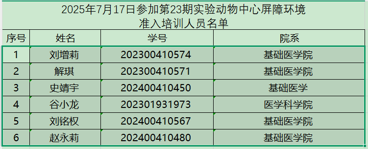 請以下參培人員于2025年7月17日下午14:30到實驗動物中心三層多功能會議室參加培訓和考試!