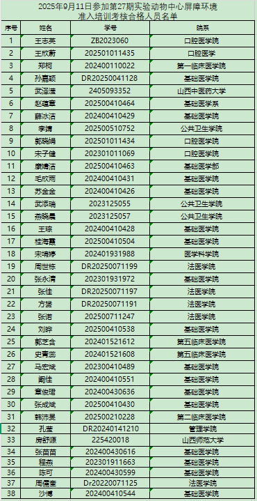 第27期屏障環(huán)境準(zhǔn)入培訓(xùn)合格人員名單