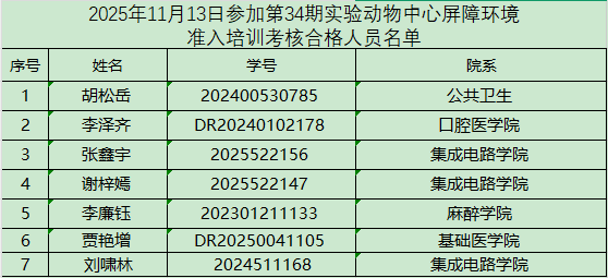 以下培訓合格人員需在一個月內進入屏障開展動物實驗,逾期未進者需重新接受培訓和考核,望周知!