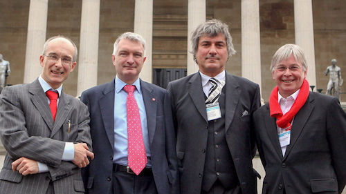 Martin Birchall(左)、Paolo Macchiarini (右2)與合作者,2010年完成首例兒童干細胞氣管移植后合影。圖片來源:PA IMAGES
