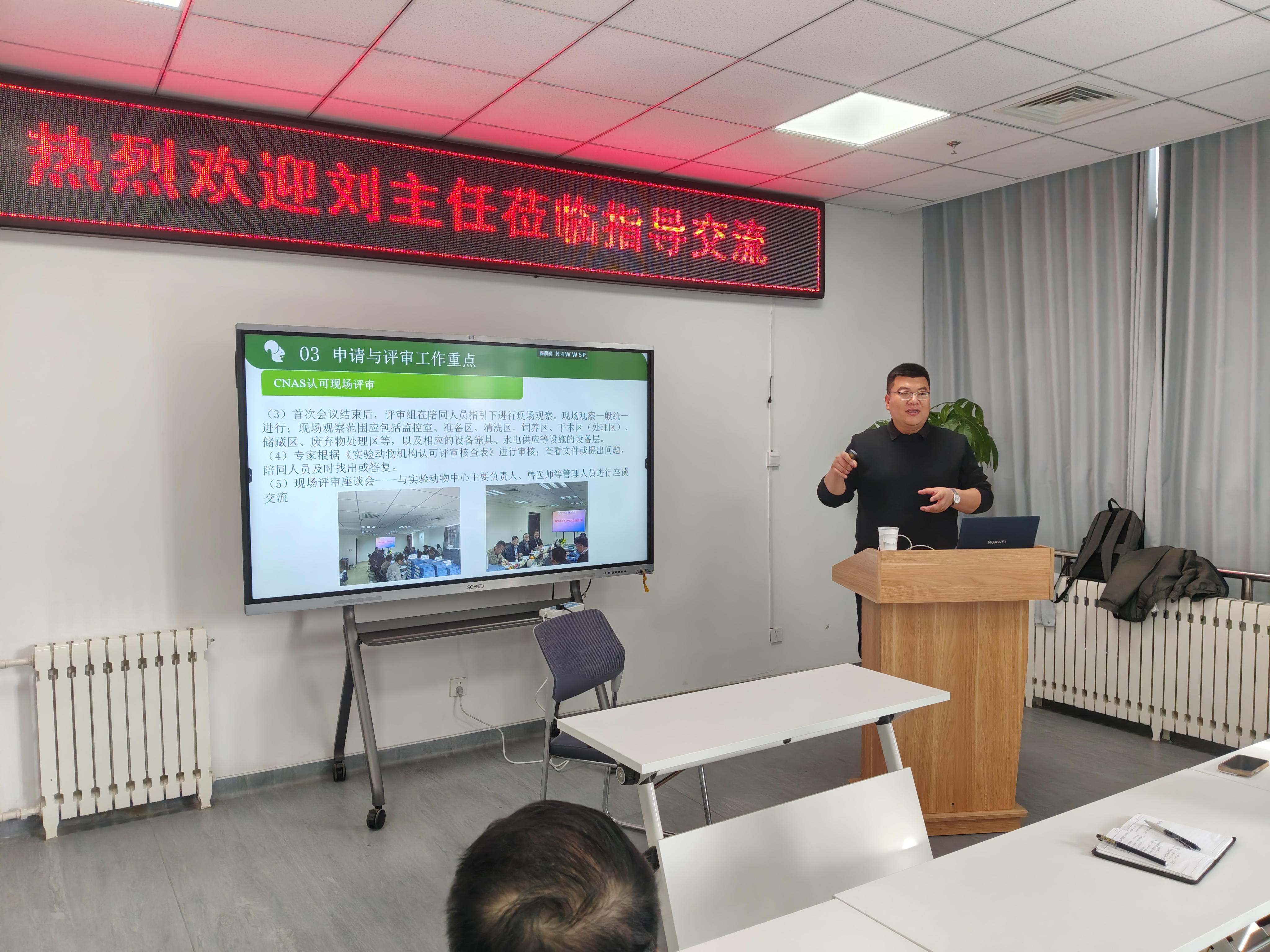 講座中,劉琪帥主任圍繞CNAS-CL06《實驗動物飼養和使用機構質量和能力認可準則》這一核心文件展開系統講解。他結合云南大學實驗動物中心的認證實踐案例,從認證申請的前提條件、資料準備、流程管控到評審整改等關鍵環節進行了全方位闡述,逐一說明編制規范與注意事項。在技術要點解讀部分,劉琪帥主任聚焦管理體系建設、人員資質保障、設施設備管理等關鍵領域,深入剖析了機構負責人權責界定、首席獸醫師資質要求、動物管理和使用委員會(IACUC)獨立運行機制等核心內容。他提出要重視文件控制、記錄管理、糾正措施等體系運行的閉環管理。