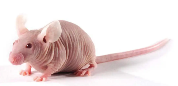 裸鼠:1962年英國格拉斯哥醫(yī)院在非近交系小鼠中發(fā)現(xiàn)個別無毛老鼠,并伴有先天性胸腺發(fā)育不良,經(jīng)過培育后形成突變系裸小鼠。特征為先天性胸腺缺陷,胸腺依賴性免疫功能缺乏,T細(xì)胞功能接近于零,人體腫瘤異種移植時無排斥反應(yīng),沒有被毛,皮膚裸露,便于動態(tài)觀察腫瘤的生長狀態(tài),抵抗力差,易患病毒性肝炎和肺炎。廣泛用于腫瘤學(xué)、免疫學(xué)、微生物學(xué)和毒理學(xué)等研究領(lǐng)域。