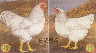 6. 白洛克雞:蛋肉兼用型雞種,原產于美國。羽毛白色,單冠,喙、脛和皮膚均黃色年產蛋量150-160個,蛋用品系達200個以上。
