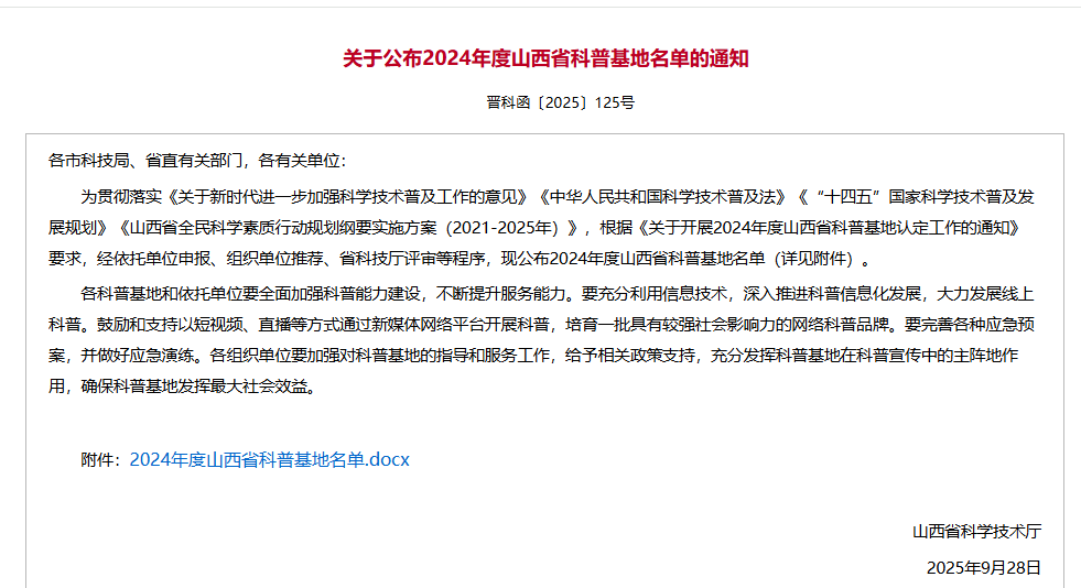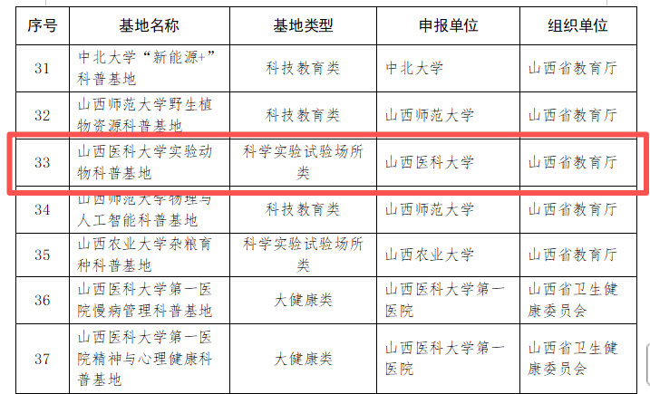 喜訊!我校實驗動物中心獲批山西省科普基地!