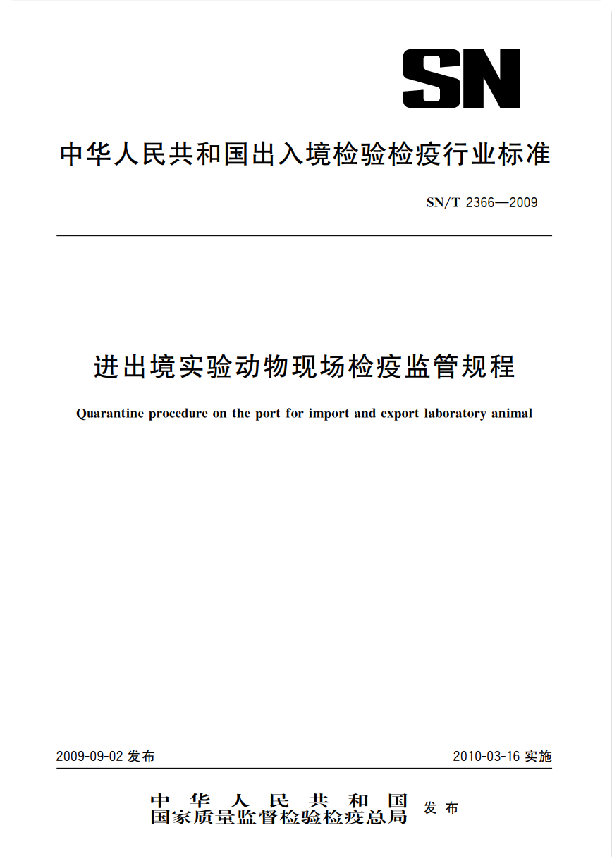 SN-T 2366-2009 進(jìn)出境實(shí)驗(yàn)動物現(xiàn)場檢疫監(jiān)管規(guī)程
