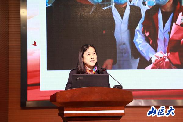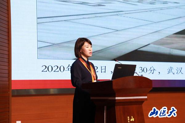 賀培鳳在講話中代表學(xué)校黨政領(lǐng)導(dǎo)班子,向在抗疫斗爭最為嚴(yán)峻的時刻,勇于擔(dān)當(dāng)、勇敢逆行,奮戰(zhàn)在湖北及省內(nèi)抗疫一線的醫(yī)務(wù)工作者,致以崇高的敬意和衷心的感謝。她充分肯定了奮戰(zhàn)在抗疫一線的醫(yī)護(hù)人員,用實(shí)際行動踐行“敬佑生命、救死扶傷、甘于奉獻(xiàn)、大愛無疆”的職業(yè)精神和“生命至上、舉國同心、舍生忘死、尊重科學(xué)、命運(yùn)與共”的偉大抗疫精神的大醫(yī)情懷。她要求,與會師生要認(rèn)真聽取報告,深入學(xué)習(xí)抗疫英雄們恪盡職守、不畏艱難的職業(yè)情懷。她勉勵廣大青年學(xué)生認(rèn)真學(xué)習(xí)、刻苦鉆研,以實(shí)際行動踐行奉獻(xiàn)人民衛(wèi)生健康事業(yè)的神圣職責(zé)和使命。