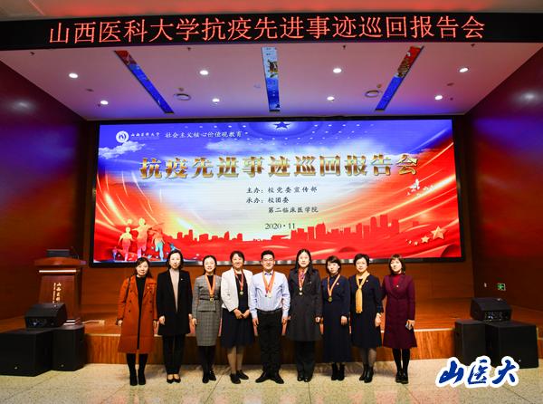 報告會邀請了由我校第二醫(yī)院睡眠醫(yī)學(xué)科主任王蓓,呼吸與危重癥醫(yī)學(xué)科副主任田新瑞,呼吸與危重癥醫(yī)學(xué)科黨支部書記、副主任趙卉,婦產(chǎn)科團(tuán)支部書記田燁,手術(shù)室團(tuán)支部書記高未印組成的抗疫先進(jìn)事跡報告團(tuán),為參會代表講述了他們的抗疫故事。