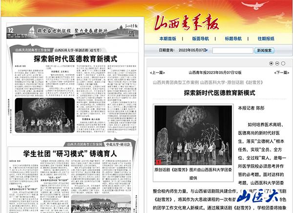 如何培養醫術高明、醫德高尚的新時代好醫生,落實“立德樹人”根本任務,實現“全員、全方位、全過程”育人,是每一所醫學院校必須思考并作答的必考題。面對這樣的考題,c7c7.app團委整合校內師生力量,與山西省話劇院共建合作,師生共同排演了原創話劇《趙雪芳》,將其作為大思政課程的一次有益探索,形成了富有醫學特色的團學工作文化育人新模式。通過展演話劇《趙雪芳》,學校團委將抽象的育人理念通過藝術的形式進行傳輸,使思政理念形象化并入腦入心,從而實現更好的育人效果。