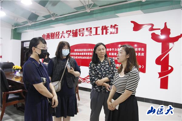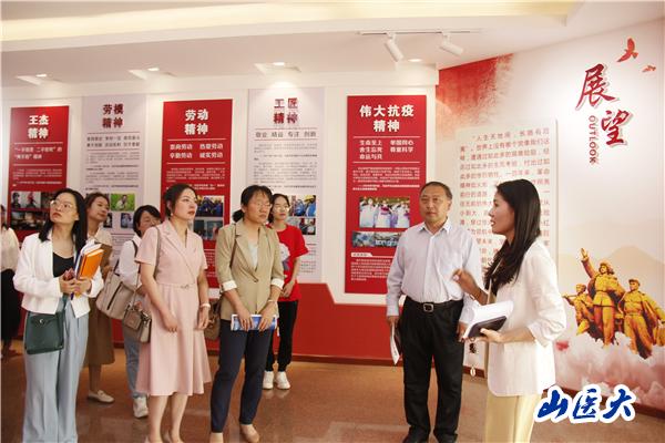 山西財經大學學生工作部、武裝部副部長陶陶在座談會上對王卓一行表示熱烈歡迎,她圍繞“大學生思想政治教育”“輔導員隊伍建設”與現場的老師們進行了交流體會。她指出,輔導員與大學生的聯系最緊密、最頻繁,對學生的影響最直接、最深刻,既是學生的人生導師和知心朋友,也是學?顧枷胝治工作的骨干隊伍,山財學生工作堅持立德樹人,開拓進取、傾力奉獻,在許多領域取得了較好的成績,在我省高校系統形成了一定的影響,這些成績來之不易,不僅凝聚著學工人的心血與汗水,更匯集著幾代學工人的耕耘與傳承。王卓書記就如何立足高校實際開展好思想政治教育工作介紹了基礎醫學院的主要做法和經驗,分享了取得的工作效果,希望兩校通過交流和研討,進一步促進高校黨建與學生工作高質量發展。交流結束后,基礎醫學院調研人員在學生志愿者的帶領下參觀了紅色新青年成長領航館和大學生晉商精神與誠信教育基地。