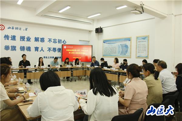 為進一步提高輔導員隊伍建設、加強黨支部建設,提升組織力,學習對標 “全國高校黨建工作標桿院系”和“全國黨建工作樣板黨支部”培育創建工作, 6月8日下午,我校基礎醫學院黨委書記王卓帶隊,分團委書記、組織員、輔導員一行10人赴山西財經大學學生工作部、管理科學與工程學院開展黨建與學生工作調研學習交流活動。