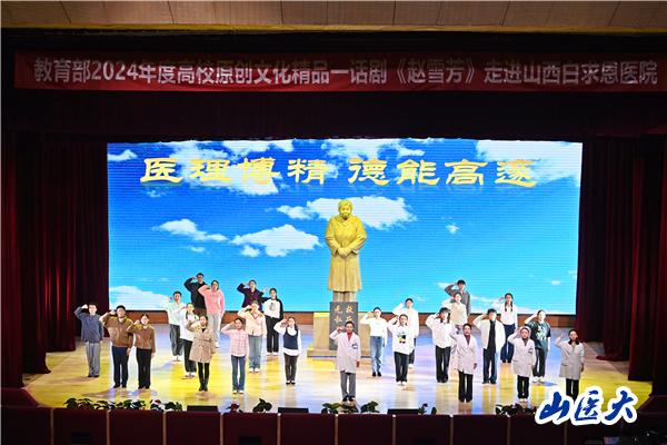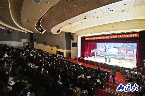 3月31日晚,我校原創話劇《趙雪芳》在山西白求恩醫院成功演出,醫院500多名醫護工作人員及家屬、學生、后勤工作人員、社區代表現場觀看。