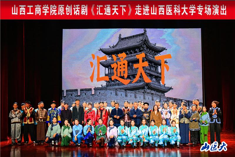 10月26日晚,山西工商學(xué)院原創(chuàng)話(huà)劇《匯通天下》在我大學(xué)生劇場(chǎng)演出。校黨委副書(shū)記彭月蘭,山西工商學(xué)院黨委副書(shū)記李天懷,省文化廳編輯部主任、原創(chuàng)話(huà)劇《匯通天下》編劇王輝等出席活動(dòng)。我:蛻轎鞴ど萄г合喙夭棵鷗涸鶉、師生代表等共600余人現(xiàn)場(chǎng)觀看了演出。
