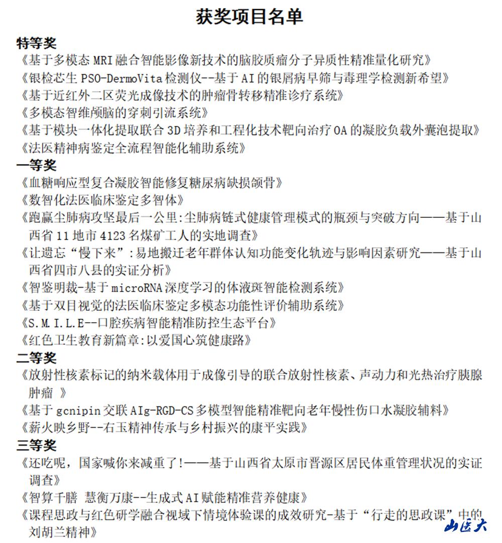 6月6日至9日,第十九屆“挑戰(zhàn)杯”山西省大學(xué)生課外學(xué)術(shù)科技作品競賽在太原理工大學(xué)落下帷幕,我校在主體賽、“人工智能+”賽道和紅色專項活動中表現(xiàn)亮眼,共榮獲20項獎項,包含特等獎6項、一等獎8項、二等獎3項、三等獎3項。其中我校特等獎與一等獎數(shù)量之和僅次于東道主太原理工大學(xué),位列全省高校第二,彰顯了我校在人才培養(yǎng)和科技創(chuàng)新方面的強勁實力。