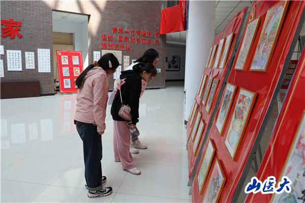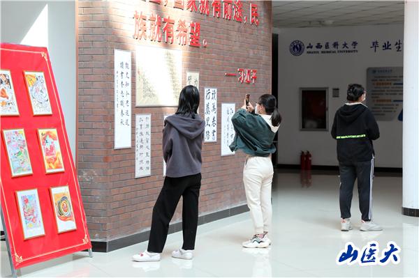 本次展出的優秀藝術作品,是從全校7000多名同學完成的作品中選出,涵蓋了書法、手繪、手抄報、攝影、微視頻、手工作品等不同的類型。這些作品取材現實,書寫情懷,定格當下,展現了新時代十年共圓中華民族偉大復興中國夢的生動實踐,通過豐富的色彩、完美的造型和源于生活的感悟,彰顯了鮮明的主題和精湛的制作技藝,表達了對新時代的熱情謳歌和深情禮贊,師生們從中可以深刻感受到新時代這十年巨變帶來的心靈震撼。這些作品,體現了山醫學子深入學習宣傳貫徹黨的二十大精神,與黨同心、與時代共振的政治覺悟,同時也是一次以原創作品宣講黨的二十大精神的主題活動。