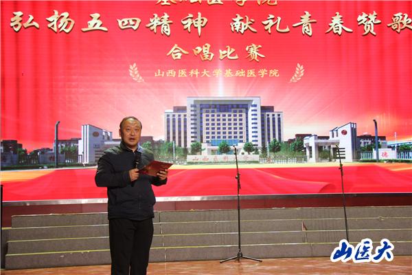 為深入學習貫徹黨的二十大精神,引導廣大青年學生弘揚五四精神,5月10日,基礎醫學院在大學生劇場舉辦“弘揚五四精神,獻禮青春贊歌”合唱比賽。校學生工作部副部長楊潔、基礎醫學院副院長劉繼斌、校工會委員會:、校團委李燁、校黨委宣傳部劉志芬和國網山西超高壓變電公司黨建部團委書記張曉玲擔任評委,基礎醫學院黨委書記王卓、黨委副書記劉霞和2022級思想政治輔導員出席此次活動。