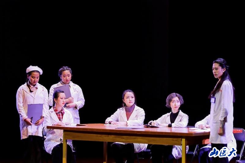 話劇《趙雪芳》是我校國家級一流本科課程《醫德教育實踐》“醫德典型教育”授課環節的重要內容,獲批教育部2024年度高校思想政治工作質量提升綜合改革與精品建設項目。該劇以我校優秀校友、全國第一枚“白求恩獎章”獲得者趙雪芳為原型,以其生平事跡為故事線索,將趙雪芳的感人事:凸膊吃蔽匏椒釹拙裨儐鐘諼杼,體現了“敬佑生命、救死扶傷、甘于奉獻、大愛無疆”的醫者精神。該劇于 2019 年8月19 日在山西大劇院首演,每年在校大學生劇場開展新生醫德典型教育專場演出、2024年在山西白求恩醫院、山西中醫藥大學、太原學院巡回演出,至今共計演出43。劭慈聳21000余人次,產生了廣泛的社會影響。