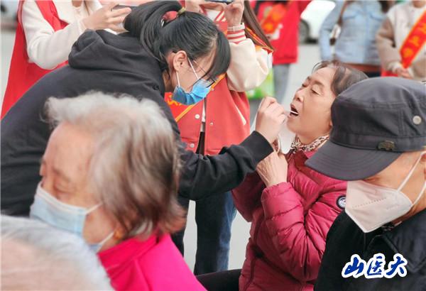 在醫生的指導下,志愿者們為社區居民提供了免費的甲流抗原檢測服務,幫助老人查看檢測結果,并耐心為他們答疑解惑。同時,也為行動不便的老人提供上門檢測,科普健康知識,做到了志愿服務的精準化,也得到社區居民的一致好評。