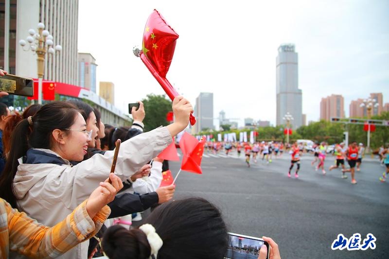 我校的200多名研究生組成助威隊伍,在距離起點1-2公里的賽道沿線,用最直接的方式為選手們鼓勁加油。他們手持國旗,吶喊聲、加油聲此起彼伏,不絕于耳,以最飽滿的熱情,為每一位經(jīng)過的選手注入動力與鼓勵,為選手們提供了強有力的精神支持,展現(xiàn)了太原開放包容、活力四射的城市形象,成為賽事中一道溫暖而動人的風景線。
