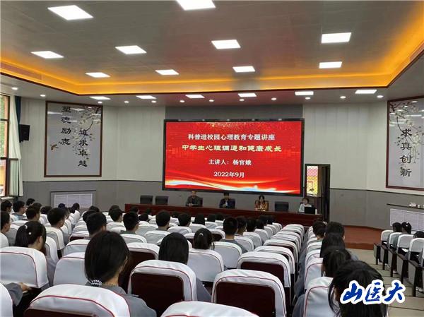 在太原市尖草坪區科協主辦的“開展科普講座草坪行 助力太忻經濟一體化”活動中,楊官娥分別為恒大御景灣小學、西莊小學、趙莊小學的學生進行了題為“小學生心理調適與健康成長”講座;在呂梁市科協主辦的科普活動中,楊官娥教授分別為文水二中和文水中學高二學生進行了題為“中學生心理調適與健康成長”講座。