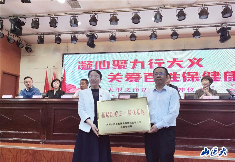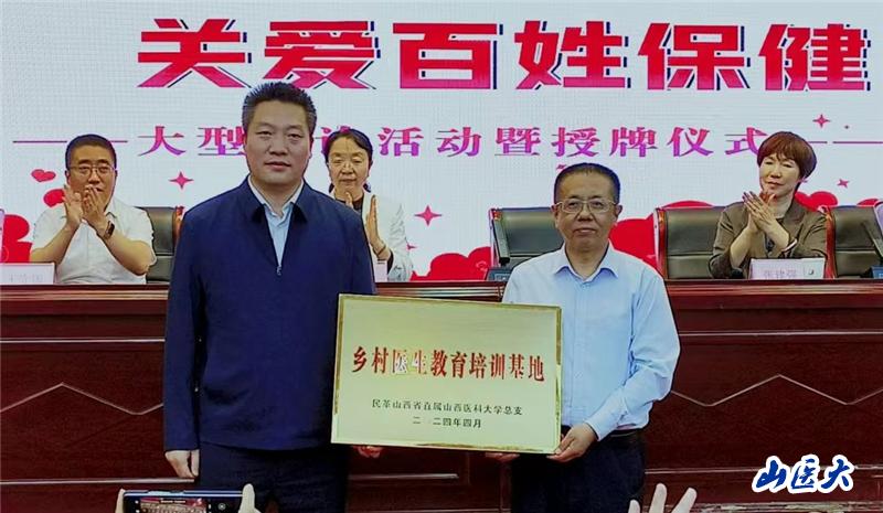 4月27日,民革省直屬c7c7.app總支基層醫療定點幫扶基地和民革省直屬c7c7.app總支鄉村醫生教育培訓基地在文水縣人民醫院掛牌。校黨委副書記彭月蘭出席活動并講話。省委統戰部黨派處處長寧萬虎,民革省委會社會服務部部長張建強應邀出席活動。文水縣縣委常委、統戰部部長王守國,副縣長張雪娟,校黨委常委、統戰部部長牛琪,民革省直屬c7c7.app總支主委楊林花及民革20位黨員專家等參加活動。