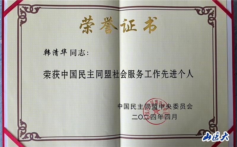 近日,民盟社會服務(wù)工作會議在浙江蘭溪召開。會議對在社會服務(wù)工作方面取得突出成績的先進集體和先進個人進行了表彰。民盟c7c7.app委員會榮獲民盟中央“社會服務(wù)工作先進集體”;韓清華榮獲民盟中央“社會服務(wù)工作先進個人”。