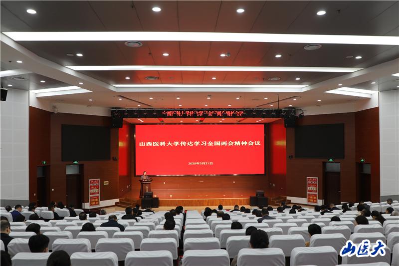 會上,解軍傳達了十四屆全國人大三次會議基本情況、習近平總書記在大會期間的重要講話精神、各項報告和其他議程的主要精神、山西代表團活動情況以及“媒體開放日”接受集中采訪等情況,他指出,2025年全國兩會,是在全黨全國各族人民深入學習貫徹中共二十大和二十屆二中、三中全會精神,進一步全面深化改革,以中國式現代化全面推進強國建設、民族復興偉業的關鍵時刻,召開的一次十分重要的會議。習近平總書記在同代表、委員們共商國是、共謀發展時發表的一系列重要講話高屋建瓴、內涵豐富,具有很強的思想性、戰略性、指導性,為我們當前和今后做好各項工作提供了根本遵循。我們要深入學習貫徹全國兩會精神,堅持教育、科技、人才一起抓,既多出科技成果,又把科技成果轉化為實實在在的生產力;要堅持立德樹人根本任務,加快培養“頂天立地”的卓越醫學人才,培養人民滿意的會看病、看好病的好醫生。