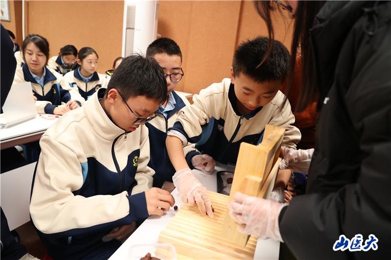 在動手操作環節,“艾灸無憂”大學生創新創業團隊耐心指導同學們現場體驗傳統中成藥片劑、香包和艾絨艾柱等制作過程。同學們紛紛化身小藥劑師,過了一把中醫藥加工制作的“癮”。