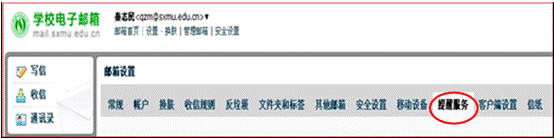 第一步:登陸學校郵箱(http://mail.sxmu.edu.cn)進入學校郵箱的首頁。見圖1。