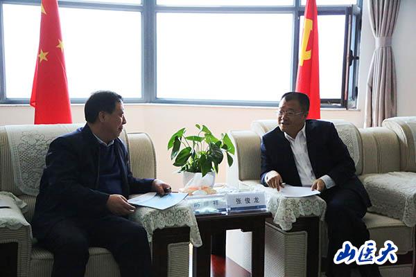張俊龍書記對省衛生計生委領導對我校的關心、支持表示感謝,他表示要盡快將雙方合作事項做實落地,要著眼高起點,培養更高層次的人才,產出更多的科研創新成果,服務山西人民的衛生與健康事業。