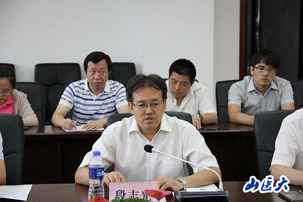 段志光校長致歡迎辭,他首先介紹了我校歷史發展、新校區建設、“1331工程”推進基礎醫學學科遴選的過程。并指出,基礎醫學入選省“1331工程”優勢特色學科,既是終點也是起點,對學校的學科發展有著非常重大的意義。
