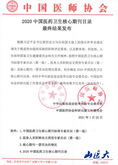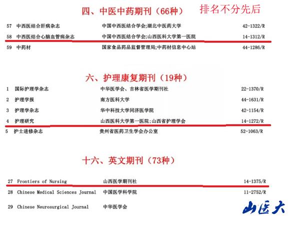1月25日,中華出版促進會醫學出版專業委員會、中國醫師協會科研出版工作委員會發布“2020中國醫藥衛生核心期刊目錄”。第一醫院主辦的《護理研究》《中西醫結合心腦血管病雜志》《Frontier of Nursing》入選2020中國醫藥衛生核心期刊。