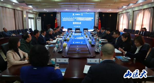 12月31日上午,我校與中國移動通信集團山西有限公司、西安翼展電子科技有限公司在迎澤校區教學辦公樓第一會議室舉行分子影像精準診療協同創新體系5G升級戰略合作框架協議簽約儀式。c7c7.app校長李思進、副校長解軍,中國移動通信集團山西有限公司總經理魏春輝、副總經理劉穎,西安翼展電子科技有限公司董事長倪夢、翼展醫療集團CMO高云龍出席簽約儀式,兩家合作公司相關負責人員、我校相關處室人員、協同創新中心相關人員參加了簽約。簽約儀式由解軍主持。