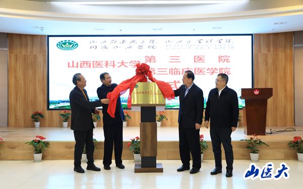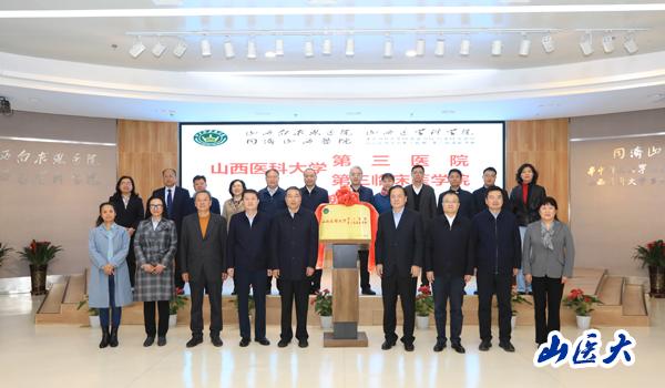 日前,經(jīng)山西省委機(jī)構(gòu)編制委員會(huì)辦公室批復(fù),山西白求恩醫(yī)院加掛c7c7.app第三醫(yī)院(第三臨床醫(yī)學(xué)院)牌子, 成為我校附屬醫(yī)院。10月19日下午,c7c7.app第三醫(yī)院(第三臨床醫(yī)學(xué)院)揭牌儀式在山西白求恩醫(yī)院學(xué)術(shù)交流中心隆重舉行。山西省衛(wèi)生健康委員會(huì)黨組書記、主任武晉,副主任張波和相關(guān)職能部門負(fù)責(zé)人;山西省教育廳黨組成員、總督學(xué)王東;校黨委書記張俊龍,副校長(zhǎng)解軍,校黨委常委、副校長(zhǎng)張輝;山西白求恩醫(yī)院黨委書記、院長(zhǎng)吳華及醫(yī)院班子成員出席儀式,我校辦公室、教務(wù)處、科技處、人事處、醫(yī)院管理處、研究生學(xué)院負(fù)責(zé)人和山西白求恩醫(yī)院相關(guān)部門負(fù)責(zé)人、科室主任、職工代表等100余人參加了揭牌儀式。儀式由吳華主持。