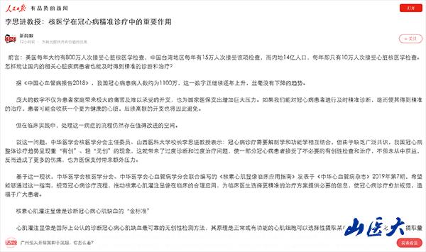 4月17日,人民日報客戶端新媒體平臺“人民號”中的“新聞眼”以《李思進教授:核醫(yī)學(xué)在冠心病精準(zhǔn)診療中的重要作用》為題發(fā)表了我校校長李思進教授的文章,他在文章中表達了“規(guī)范冠心病診療流程,推動核素心肌灌注顯像在臨床的合理應(yīng)用,為臨床醫(yī)生選擇更精準(zhǔn)的治療方案提供必要的信息,使冠心病診療愈加規(guī)范”的觀點。