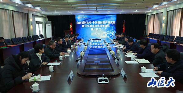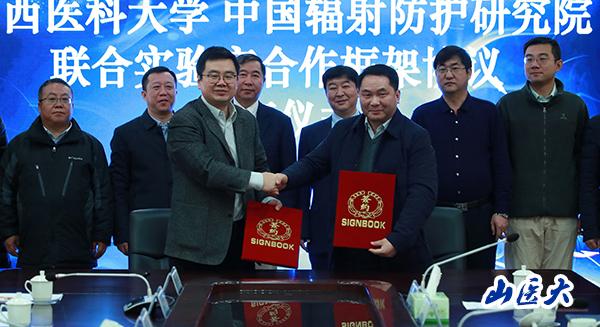 12月10日上午,我校與中國輻射防護研究院在迎澤校區教學行政樓十三層會議室舉行聯合實驗室合作框架協議簽約儀式。中國輻射防護研究院院長劉群,副院長鐘銳,省政協副主席、校長李思進,副校長解軍等領導出席簽約儀式,學校相關職能部門、相關院系負責人、部分教師代表參加了簽約儀式。簽約儀式由解軍主持。