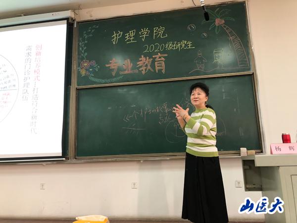 11月5日下午,護(hù)理學(xué)院在迎澤校區(qū)舉辦了研究生“導(dǎo)師說”專業(yè)教育活動(dòng)。護(hù)理學(xué)院院長、博士生導(dǎo)師楊輝教授以《護(hù)士的精進(jìn)與修養(yǎng)》為題,為2020級(jí)新生講授了一堂生動(dòng)的專業(yè)教育課。