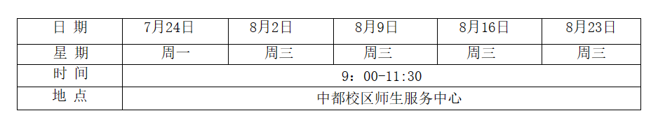 為方便學生辦理人事檔案相關事宜,擬訂每周三上午9:00-11:30時在中都校區師生服務中心集中辦理。