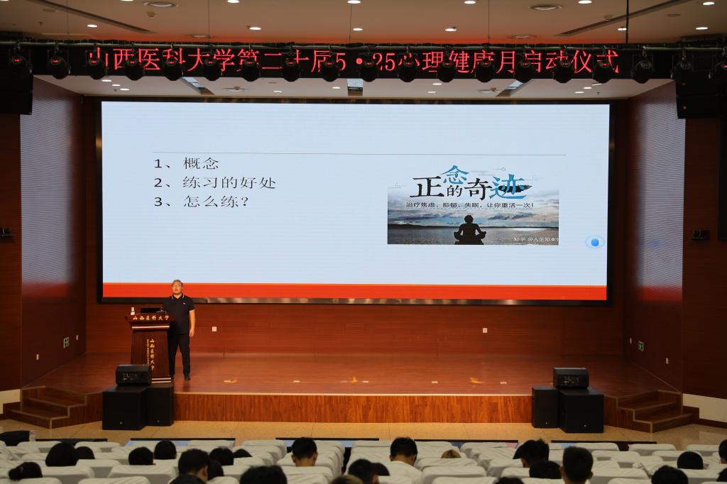 啟動儀式后,特別邀請長治醫(yī)學(xué)院專家秦濤開展了主題為《正念的力量》專題講座。在輕松寧靜的氛圍中帶領(lǐng)同學(xué)們體驗(yàn)一場別致的正念之旅。