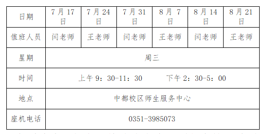 2.電話值班(如辦理特殊業務或遇到緊急情況請聯系閆老師,王老師)