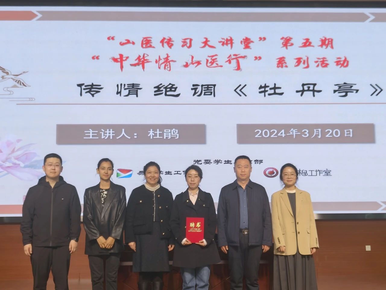 為弘揚(yáng)中華優(yōu)秀傳統(tǒng)文化,促進(jìn)學(xué)生文化素質(zhì)的提升,3月20日晚,學(xué)生工作部易班學(xué)生工作站和紅石榴工作室在中都校區(qū)教學(xué)辦公樓一層學(xué)術(shù)報(bào)告廳,共同舉辦了第五期“山醫(yī)傳習(xí)大講堂”及“中華情·山醫(yī)行”系列活動(dòng),主題為“傳情絕調(diào)《牡丹亭》”。講座由中北大學(xué)人文社會(huì)科學(xué)學(xué)院副院長杜鵑教授主講,學(xué)生工作部部長張晶、副部長楊潔出席,易班學(xué)生工作站和紅石榴工作室全體成員、熱愛中華傳統(tǒng)文化的同學(xué)們參加了此次講座,網(wǎng)絡(luò)思政教育中心負(fù)責(zé)人王玉男主持。