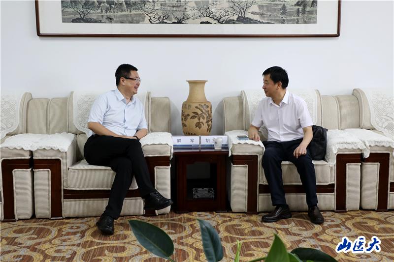8月26日,長治市人民醫院黨委書記、院長胡文慶一行來到我校,圍繞科研創新與醫院高質量發展等進行座談交流。校長解軍,黨委常委、副校長劉春以及相關職能部門負責人出席了座談會。會議由劉春主持。