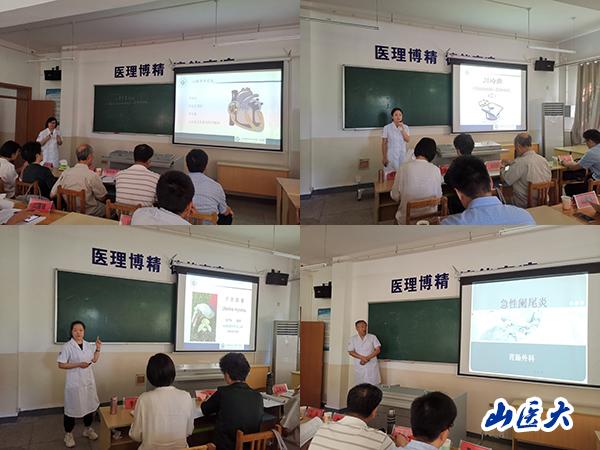 秦綱就教學情況進行匯報,隨后督導檢查組一行實地走訪了學生宿舍、餐廳,查閱了教研室資料,內外婦兒四個教研室安排教師進行試講。曲成毅、王彤、李亞蕊、李冰四位專家從教學大綱、教案、講義以及教學活動記錄等方面提出明確的規范和要求;對試講教師多媒體課件制作、授課內容、教學方法和手段、板書的書寫等方面進行了切中肯綮的點評,最后王英元教授從講課選題、課程導入、授課過程中教師的儀容儀表、自信度、授課時間掌握等方面進行了深入淺出的講解。