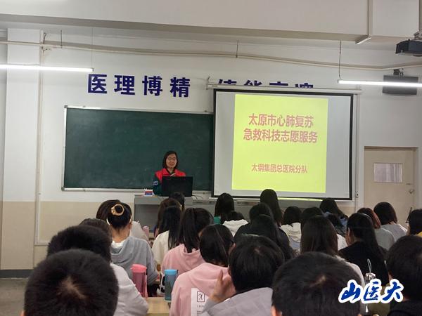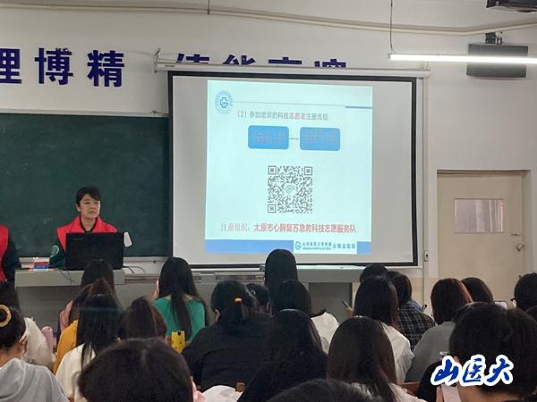 科技志愿服務隊蘭興梅老師向同學們介紹了太原市心肺復蘇急救科技志愿服務——太鋼集團總醫院分隊的基本情況。同學們了解之后都紛紛積極注冊加入到科技志愿服務隊中,成為其中一員。