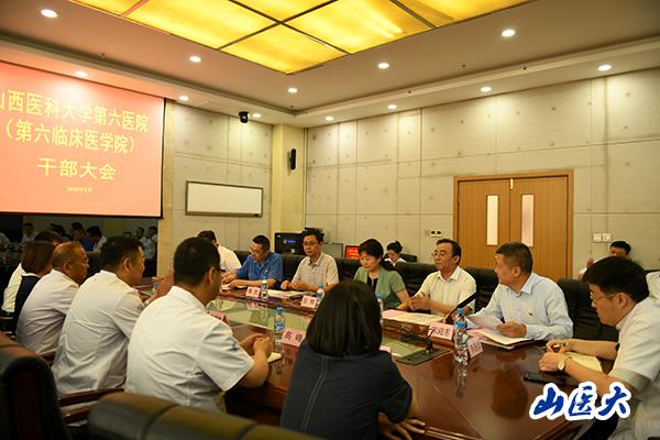 7月30日,我校第六醫(yī)院(第六臨床醫(yī)學(xué)院)召開(kāi)干部大會(huì)宣布附屬醫(yī)院領(lǐng)導(dǎo)班子及掛職干部任命。校黨委常委、副校長(zhǎng)張輝,黨委常委、組織部長(zhǎng)燕炯,醫(yī)院管理處負(fù)責(zé)人及相關(guān)人員出席會(huì)議。太鋼(集團(tuán))公司黨委組織部相關(guān)領(lǐng)導(dǎo)、醫(yī)院班子成員、助理以上干部、職能科室負(fù)責(zé)人、各支部書(shū)記等50余人參加了會(huì)議。太鋼醫(yī)療公司黨委書(shū)記宋迎東主持會(huì)議。