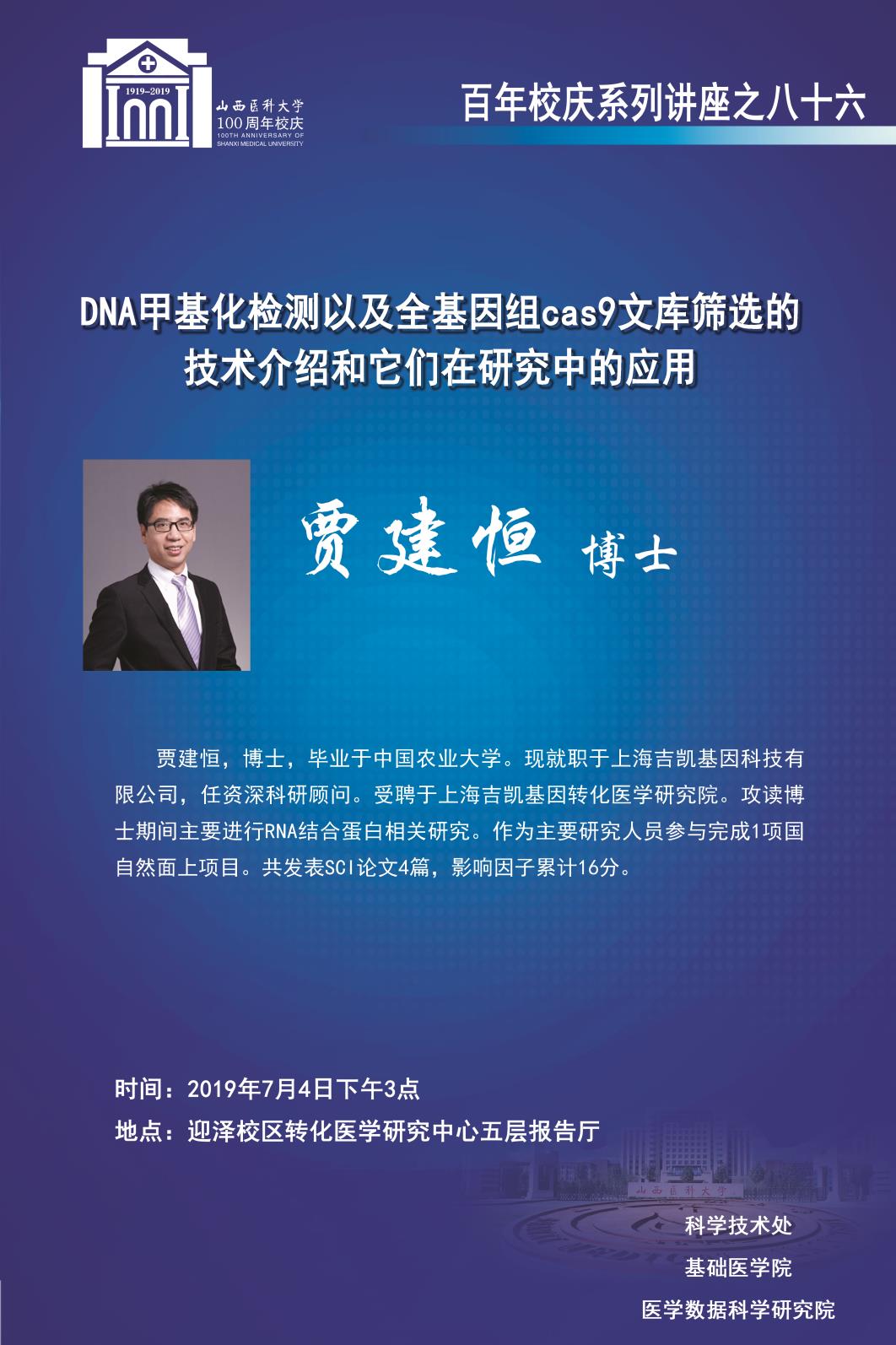賈建恒博士——DNA甲基化檢測以及全基因組cas9文庫篩選的技術介紹和他們在研究中的應用